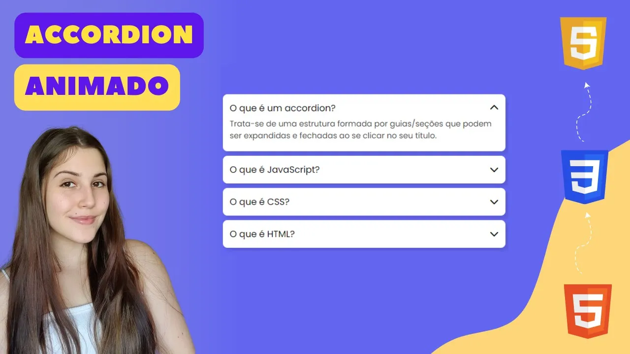 volta certinho para isso a gente tem que colocar aqui também um overflow Hing pro texto que ficar sobreescrito para cima ele não aparecer então ele fica mais ou menos assim Então esse foi o nosso acordeon ele tá pronto aqui vocês podem escrever qualquer coisa né Por exemplo aqui eu botei outros textos coloquei uma respostinha pra minha pergunta então vocês podem ficar à vontade para trocar essas coisas também Então esse foi o vídeo eu espero que vocês tenham gostado se vocês gostaram não esqueçam de deixar o like se inscrever aqui no canal ativar o Sininho para