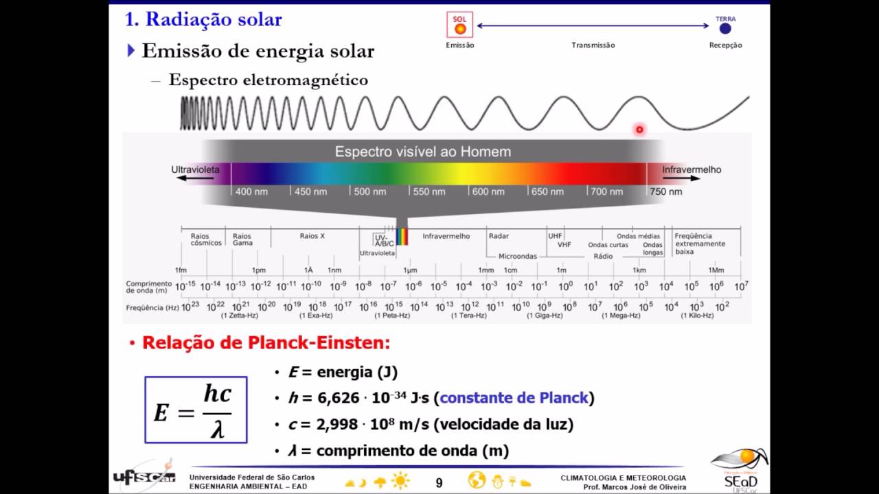 parte dessa radiação será absorvida outra difundida e finalmente uma terceira parte atinge a superfície da terra a fração difundida pela atmosfera constitui-se de uma parte que retorna ao espaço sideral e a outra parte que atinge a superfície da terra denomina-se radiação do céu QC a parte da radiação que não sofreu alteração ao atravessar a atmosfera é denominada radiação direta qd assim a radiação que por fim chega até a superfície da terra é denominada de radiação Global QG a radiação Global pode ser calculada por QG = QC + qd a unidade no sistema internacional de radiação
