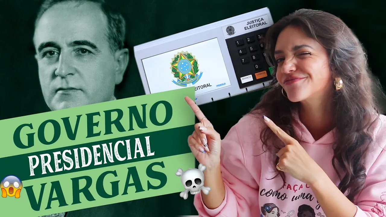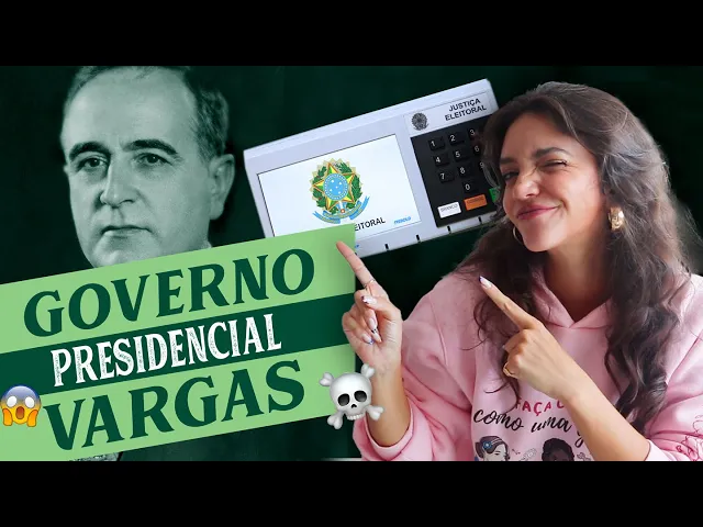 Vargas né os 15 anos que Getúlio Vargas esteve no poder do estado novo e agora eu voltei anos depois para finalmente fazer a aula do governo presidencial que ele teve Afinal o Getúlio Vargas já esteve comandando o Brasil por 15 anos mas vai ser só agora que ele vai ser eleito mesmo né então o Getúlio Vargas vai ser presidente e não vai ter um final muito feliz não tá o Getúlio Vargas vai se matar no final desse vídeo Hoje a gente vai entender tudo isso e gente essa aula é muito legal porque hoje eu quero