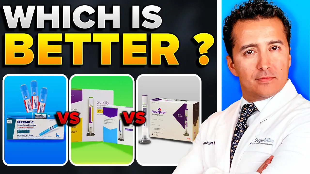 is OIC or mjara or TR lucity better I know you're on it right most of you are and I know you know want to be honest I don't I don't blame you but as a physician I always have been an advocate for natural solutions that's why I stand by neutraceutical not pharmaceutical as a means of promoting Health however it is true that Pharmaceuticals have their have their place in the medicine and prescriptions are sometimes necessary to address certain severe conditions like if your diabetes is severe and so forth that being said it is important to understand what it is that you're taking how it can benefit you that's that's exactly what I want to discuss today so let's explore a few different Pharmaceuticals and how they potentially help or harm you today we are comparing OIC choity and monara maybe you need to switch between them right if it is not the right one for you now diabetes treatment should wear the crown which one let's find out in recent years the diabetes Battlefield has witnessed this emergence of Mighty glucagon like peptide one receptor agonists to make it short glp one receptor Agonist in the fight against type two diabetes Well of course the best fight is Tian exercise that's why you're watching my videos but for those of you who are not able to get their diabetes under control taking these medications this video is very important for you now these incredible Ms actually mimic the powers of a naturally occurring hormone called glp1 which swoops in to save the day by taming blood sugar levels especially after meals so the glp1 receptor Agonist Heroes they often offer additional perks like glucose control number one OIC for example will reduce your cardiovascular risk and stroke risk and even weight loss which as you know a lot of people have been abusing it seatide and diabetic patients cannot get their oamic because you know overweight people want to lose it and I don't blame the overweight people who want to use it because it works for weight loss although it is a temporary fix and they know that but every champ has weaknesses like these drugs can bring along some potential Sidekicks ranging from mild tummy troubles to more severe complications like severe constipation for example but fear not in this epic video we shall compare the three legendary glp1 receptor agonists OIC Monero and trity so you can choose your ultimate treatment Ally now let's about OIC the secret identity of OIC is semaglutide now what is a super power dosage well injection once a week with those ranging from 0. 1 to 1 millgram but it can max out at 2 milligram and you're starting at 2. 5 milligram most of the time now effect on the blood sugar levels well OIC has an o inspiring ability to significantly lower Avon C levels which is a key factor actor or key indicator in long-term glucose control the brave souls who took OIC during clinical trials experienced a mindboggling average reduction of 1.