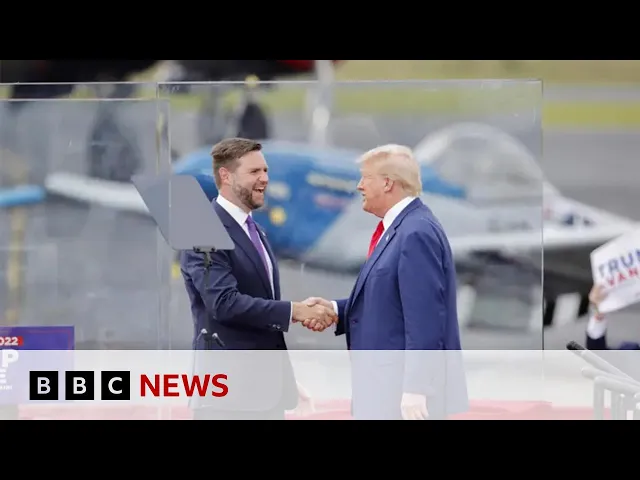 Donald Trump stands behind bullet-proof glass at first outdoor rally since he was shot | BBC News