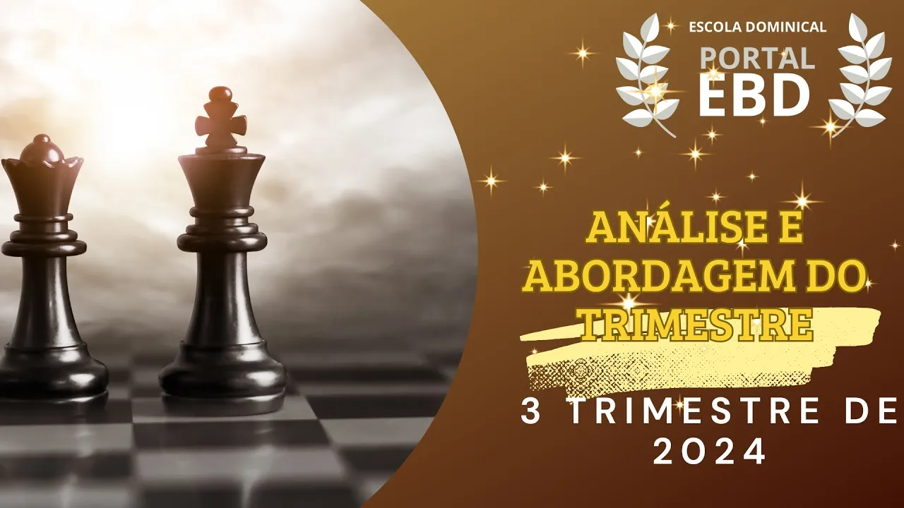 [Música] eu Saúdo com a paz do nosso Senhor Jesus Cristo aos irmãos e irmãs amigos e amigas do portal escola dominical É com grande alegria que nós estamos juntos novamente para estudar e meditar na palavra do senhor e iniciando mais um trimestre da escola bíblica dominical deste primeiro perdão neste terceiro trimestre de 2024 nós estaremos estudando na classe de adultos o tema o Deus que governa o mundo e cuida da família os ensinamentos divinos nos livros de rut e estter para a nossa geração o tema desse trimestre vai estar focado na vida de duas mulheres