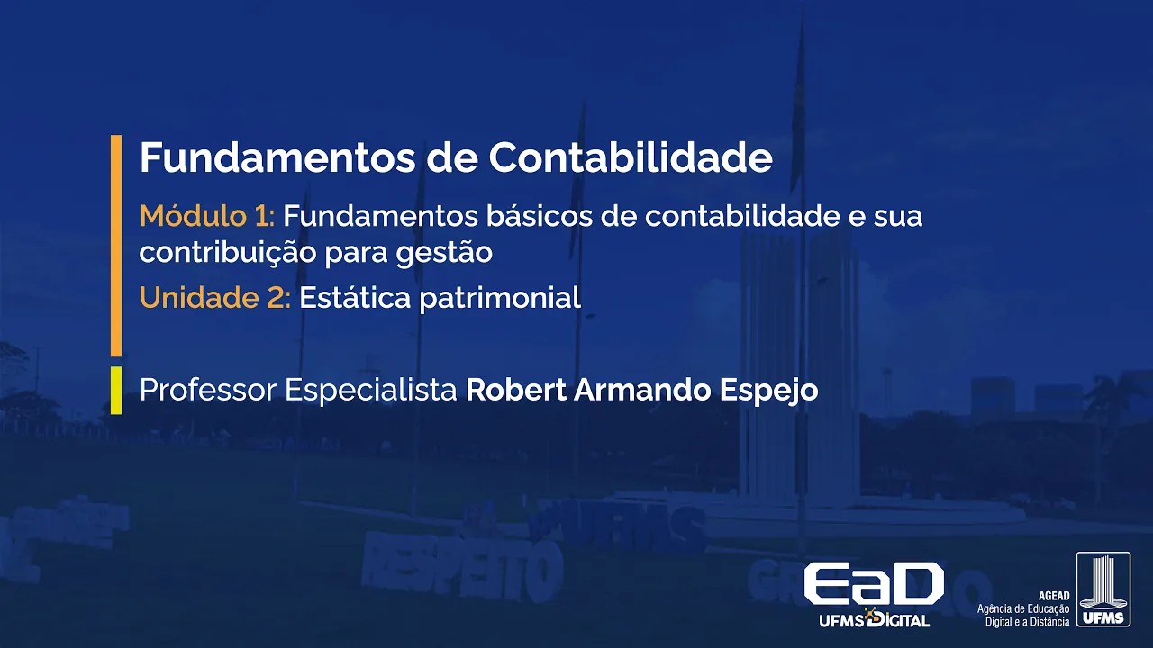 [Música] Olá dando continuidade a disciplina fundamentos de contabilidade tá hoje nós vamos falar um pouquinho sobre a estática patrimonial que corresponde à unidade 2 A estática potremo falar de estática patrimonial é falar um pouquinho sobre o princípio da entidade o princípio da entidade ele parte do princípio parte da ideia de que eu preciso separar tá o que é da empresa que é uma pessoa jurídica separar da pessoa física então A ideia é que cada uma delas tem o seu patrimônio então parte do princípio de que quando você se faz a contabilidade você precisa levar isso