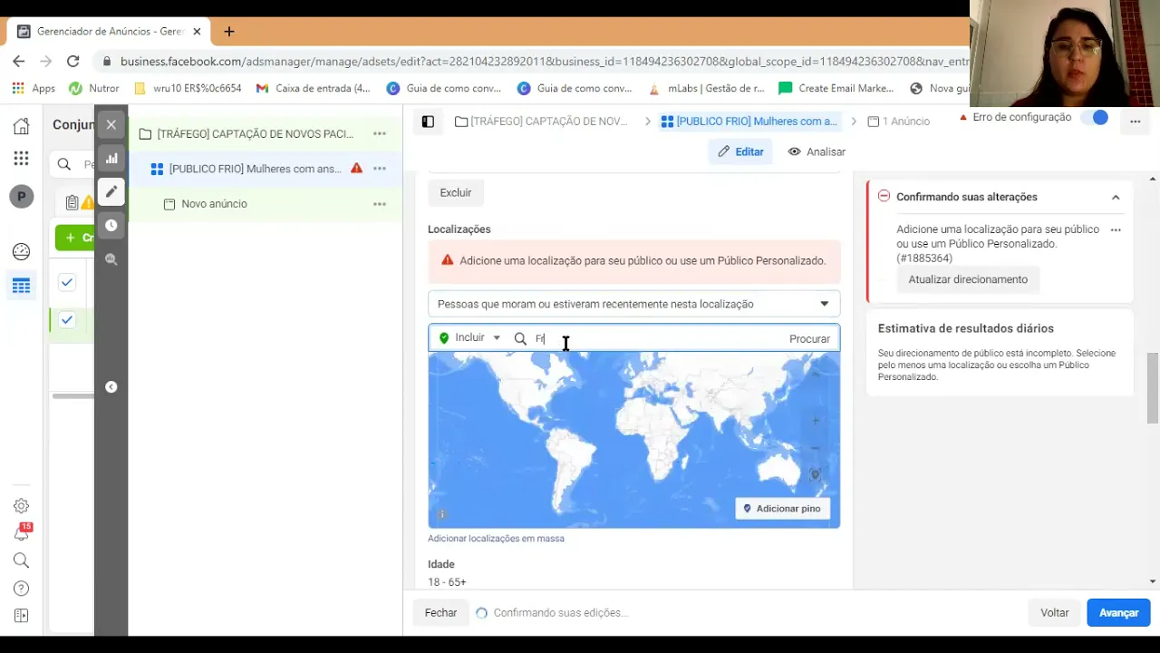 não é CEP não dá mas coloca você pode colocar endereço tá E aí você coloca aqui se você atende online quer aprender o Brasil inteiro você pode deixar Brasil mas é um dia que você coloca uma área menor porque senão você vai não vai para muita gente tenta ser mais específica tá ó Ah e não é porque vai para muita gente que vai ser melhor quem definiu a cidade você vai colocar aqui a idade qual que é a idade do seu público a Marina eu atendo Criança adulto adolescente idoso você tem que ter um lixo