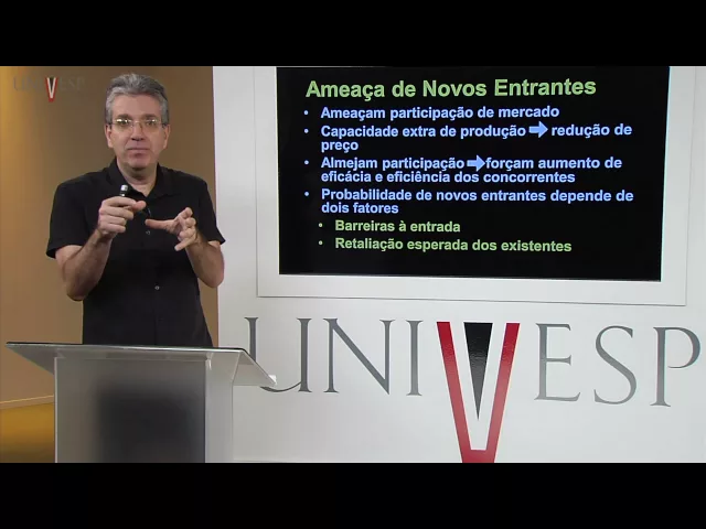 de mercado Óbvio quando entra algum novo entr a participação no mercado vai ser afetada ele vai ter alguma participação isso vai ameaçar a participação dos concorrentes que já estão no mercado Então isso é uma ameaça a nosso setor ao ele entrar no mercado ele vai ocasionar o qu uma capacidade Extra de produção não é vai aumentar o volume de produção tendo ma oferta maior a tendência é que os preços dos produtos também diminuam isso vai afetar a nossa empresa portanto Isso é uma ameaça do um novo entrante agora existem Barreiras que podem ser criadas para