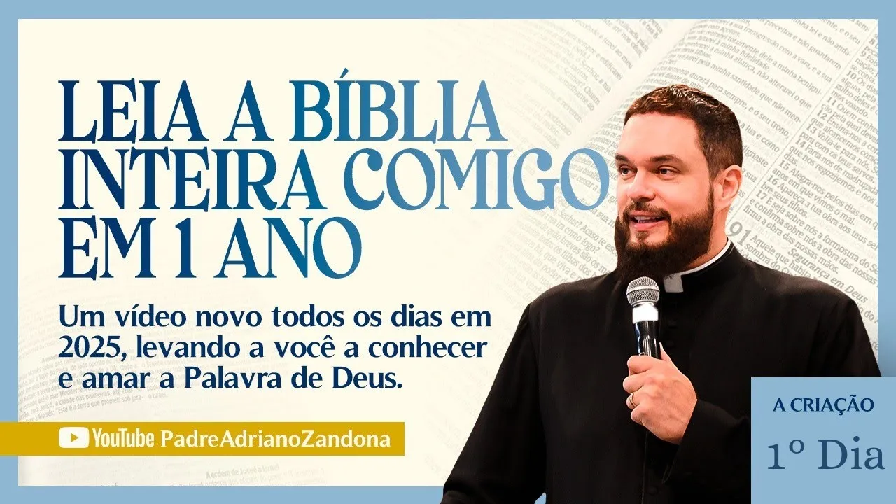 [Música] Olá Deus abençoe você que me segue aqui no meu canal no YouTube que é o padre Adriano zandon Canção Nova gente hoje estou começando uma inspiração fantástica que Deus colocou no meu coração na verdade há muito tempo eu gostaria já de ter concretizado isso e eu quero partilhar com você rapidinho no que em que consiste essa inspiração Hoje nós estamos começando uma forma de Podcast chamada chamado Bíblia em um ano o convite é para que você leia a Bíblia comigo em um ano isso mesmo ao longo deste ano todos os dias eu estou dizendo
