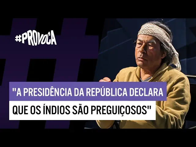 E aí [Música] E aí [Música] E aí nós queremos encher a terra de vida nos poucos que sobramos nossos netos todos os abandonados todos queremos que todos vejam como a terra se abre como flor um poema da Nação Guarani traduzido por Douglas Diegues no Brasil tem gente que ainda chama uma situação indesejável uma roubada de programa de índio hoje o provocações com honra e alegria é um programa de índio ou seria indígena eu vou saber dele o meu convidado pertence à etnia krenak um grupo de seres humanos que já recebeu o nome de botocudos não