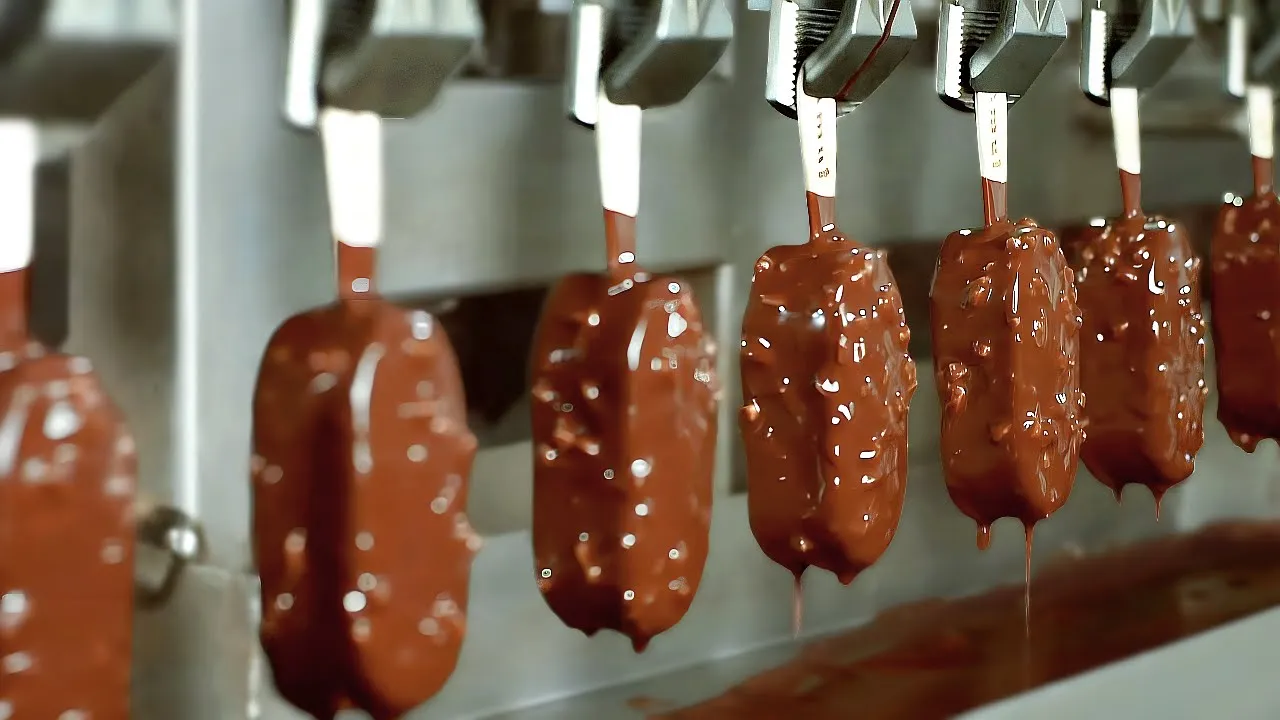 this is how things are made from suitcases to ice creams and everything in between prepare to be amazed watching ice cream bars being made is almost as fun as eating them in one smooth motion the ice cream is sliced to size while a paddle stick is seamlessly inserted under the production line these identical ice creams are then dipped into liquid chocolate to coat them in a delicious cracking shell finally they're packaged and sent your way now this isn't a Wizard's Luggage Factory but the process of wrapping these suitcases does look kind of magical in reality