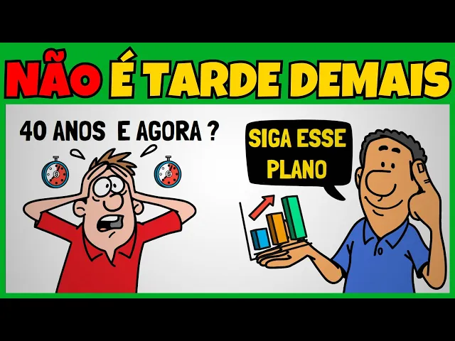 de 50% da população investe a cultura do brasileiro não é investir ou guardar dinheiro fomos ensinados a gastar e Ostentar então não se cupe se começou a investir Tarde Demais talvez você nem soubesse como funcionavam os investimentos até pouco tempo atrás Então o que fazer quando o tempo parece estar contra você será que ainda dá tempo de virar o jogo e a resposta é sim e é exatamente sobre isso que vamos falar hoje mesmo se você está começando mais tarde eu vou te mostrar que ainda dá para organizar suas Finanças investir com inteligência e garantir