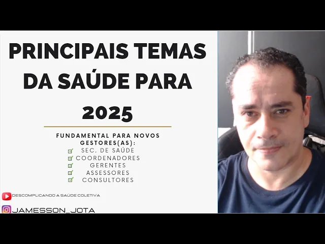 principais temas da saúde para 2025 esse vídeo ele é direcionado para secretários de saúde coordenadores gerentes diretores de unidade assessores e Consultores Afinal a gente tá finalizando o ano de 2024 e há necessidade de já saltar esses temas na verdade é de parar e conversar não pense que o ano de 2025 só começa a partir de Janeiro tá bom Esse é um erro básico de muitos prefeitos que deixam para escolher o seu secretariado somente a partir de primeiro de janeiro de 2025 isso é um grande risco segundo tem secretário que já sabe que já vai ser secretário já tá atuando com equipe de transição isso é muito importante já facilita o conhecimento do território então diretores de unidade coordenadores assessores gerentes chefes de gabinete também é muito importante a gente conversar sobre isso aqui meu nome é Jamerson Ferreira sou consultor em saúde e criador de conteúdo digital Me segue lá no Instagram na conta Jamerson andline j e também aqui no nosso canal do YouTube o canal descomplicando a saúde coletiva bom vamos explicar um pouquinho mais sobre a importância da gente antecipar esses temas o ano ele somente vai passar em questão de cronograma mas a necessidade da população ela é diária ponto um a gente serve a população a gente entende que o cargo de Secretário de saúde o primeiro lugar que você olha não é para baixo ou pro lado mas sim para quem lhe deu essa possibilidade de atuar nessa função que ela é político técnica Ok mas devido a a velocidade dos processos e a complexidade das ações da importância da sua tomada de decisões se você não adiantar essas peças você você vai se atrapalhar você pode ser literalmente atropelado por uma avalanche de responsabilidades na qual uma não espera pela outra ser resolvida então secretários e secretárias de saúde entendam há necessidade de já se posicionar e começar a mover ou montar sua equipe para trabalhar e conhecer os temas que vou falar a partir de agora tá bom então anota aí que tem bastante coisa para vocês Eu dividi a essa lista em três etapas é porque ela não é curtinha um dos grandes temas para 2025 na área da saúde é o SUS digital 2024 até dezembro de 2024 foi a fase um que ela foi caracterizada pela etapa de planejamento na qual houve a adesão ao programa surs digital houve o repasse de duas etapas de recurso duas parcelas de curso Somente Para viabilizar a etapa de planejamento na qual foi realizado um diagnóstico e também um desenho inicial de um plano de ações todos os municípios receberam esse recurso só que não está determinado ainda quais são os recursos para 2025 isso ainda vai ser discutido pelo Ministério junto aos Estados e municípios por as outras etapas e os eixos de execução Eles começam agora em 2025 tanto a discussão de onde investir Como investir e agora toda a discussão de pactuação ela é macroregional então se você ainda não sabe nada sobre surs digital pare e leia tá bom assista aqui também os vídeos no canal por enquanto 2024 foi momento de adesão e planejamento Pode ser que o seu município esteja ainda com dinheiro parado na conta esse dinheiro ele é de custeio e deveria ser aplicado na etapa de planejamento como essa etapa ocorreu justamente no Pico das eleições muitos municípios não tocaram nesse dinheiro e ele vai acabar chegando inteiro até o início do ano que vem tá mas a necessidade total de você se interar para o SUS digital segunda coisa novo financiamento da atenção primária saúde não importa o tamanho do seu município você tem atenção primária é claro que quanto menor for o seu município mais importante é a atenção primária tem muitos municípios que nem sequer T atenção hospitalar muito menos de alta complexidade tem municípios que também não tem a rede de urgência e emergência tem município que é pequenininho menor do que 10. 000 habitantes ou até 20. 000 habitantes que depende exclusivamente da organização das unidades básicas de saúde das unidades de saúde da família dos agentes comunitários de saúde da equipe multi equipe de saúde bucal e outras possibilidades de equipes como o preven Brasil ele foi colocado de lado ele foi aposentado ele foi cancelado revogado e entrou o novo financiamento as novas regras ainda não estão explícitas ainda não foram detalhadas nós não temos indicadores e o período de transição Vai de maio de 2024 até maio de 2025 e o que que é isso durante o período de transição o Ministério da Saúde informou que o recurso não vai oscilar em relação aos resultados apresentados mas se o seu município se a sua gestão tiver erros na parte de cadastro das equipes e profissionais e unidades no céis que é o Cadastro Nacional de estabelecimentos em saúde se ele passar por processos de denúncia de auditoria ou se algum dos profissionais tiver fragilidade no cadastro equipe não tiver completa todas essas possibilidades o recurso cai e isso é legal Tá bom então para você não levar um tombo já no início a a partir de maio de 2025 há necessidade de correr e estudar o novo financiamento da atenção primária saúde temos também a rede Aline que é é a nova roupagem da rede cegonha tá ela mudou o nome da rede cegonha mudou alguns componentes mudou a promessa de investimentos Ah vai ter recurso de custeio vai ter recurso de investimento se você ainda não sabe o que que é recurso de custeio O que é recurso de investimento estude porque há Total necessidade de entender essa diferença Vamos fazer um resuminho recurso de custeio é a maior parte de recurso da Saúde serve para quê iniciar ou manter Serviços de Saúde dessa forma você pode pagar salários insumos serviços contratos compra de bens não permanentes ela está ligada à ação ou você inicia a ação ou mantém uma ação o outro tipo de recurso é recurso chamado de investimento ele é um recurso ao algumas vezes maior só que ele não t