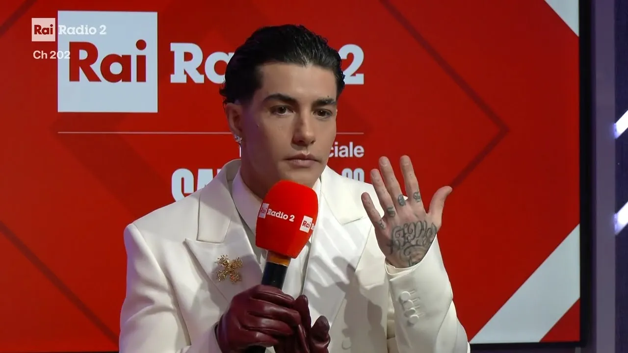 guarda ti dico la verità non avevamo il tempo per fare anche le mani era per quello pur troppo ho dovuto mettere i guanti Senti comunque il pezzo allora io siamo qua su Radio 2 la radio ufficiale del Festival di Sanremo non posso sbilanciarmi abbiamo sentito i pezzi un mese fa un paio di mesi fa con i giornalisti Sì per Rai Radio 2 sono impazzita per il tuo brano per me è veramente uno dei più belli e mi piace che tu abbia scelto una cosa che uno non si aspetta da te Sì mi sono messo in