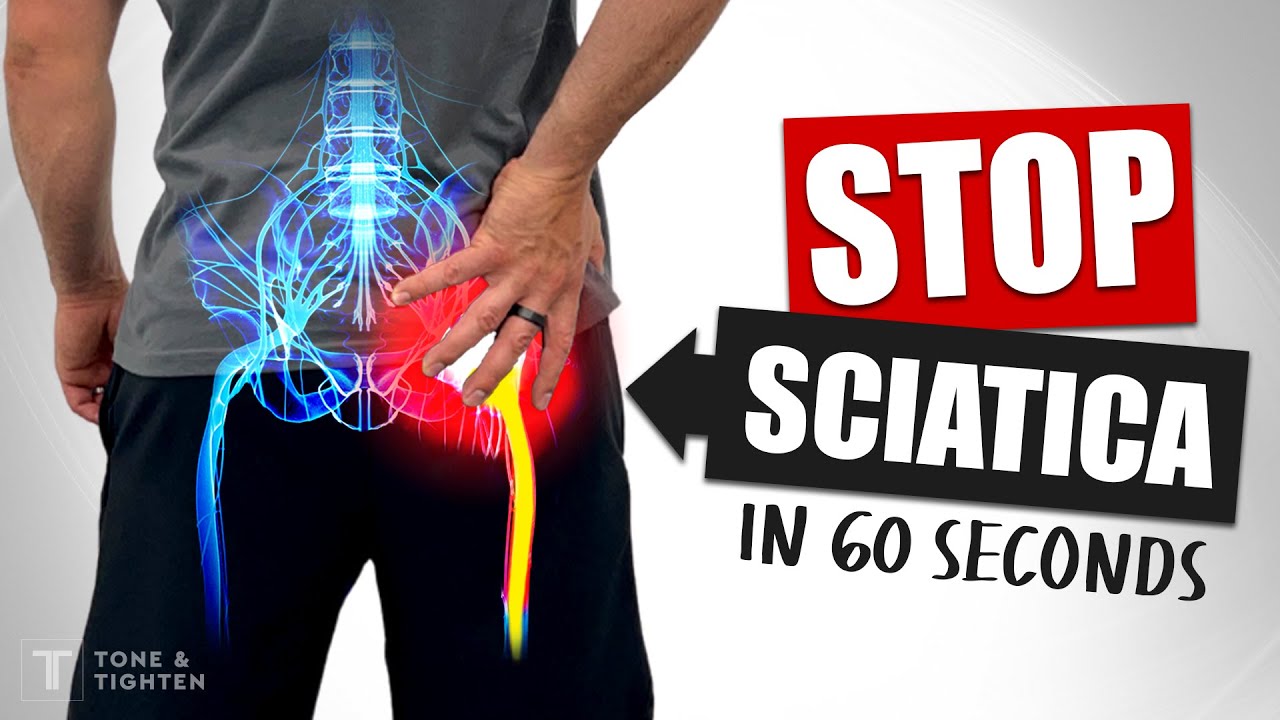 stenosis where the vertebral foramen and spaces between the vertebrae get smaller pinching the spinal cord and the nerves around it sciatica can also be caused by tumors within the spine or a back injury patients may present with pain tingling numbness weakness in their buttock the back of their legs their feet and even their toes it's worth noting that sciatica only affects one side of the body sciatica will usually resolve itself in four to six weeks but it can last longer symptoms can be managed with exercises and stretches as well as painkillers before we bring our