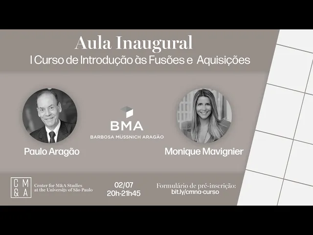 podem preencher com pergunta a gente vai que passando as perguntas ao longo da palestra para o paulo e para monique e para obter o certificado a gente pede que vocês assistam pelo menos dez dos 14 aulas o sistema que é webinar senta aqui está utilizando ele costuma acusar quanto tempo a pessoa assistiu por aula E quantas aulas a pessoa assistiu bom então posta dessas introduções gerais eu gostaria de apresentar então a bonito e o paulo vamos são sócios do dna barbosa müssnich e aragão advogados extremamente renomados nas suas áreas de atuação os mais aquisições são