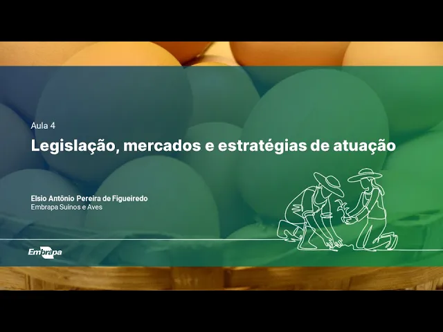 pessoal vamos a mais uma aula desse módulo um de planejamento de granja de produção de ovos a aula de hoje é a aula quro e é sobre legislação mercado e estratégias de atuação na produção de ovos meu nome é ELS Figueiredo eu sou pesquisador da Embrapa ses e aves em Concórdia Santa Catarina sobre legislação existe um conjunto de requisitos para o processo de registro das granjas e da sala de classificação de ovos e do Entreposto dentre as exigências legais para produção e comercialização de ovos e de aves para Bate cabe destacar a necessidade de Atendimento