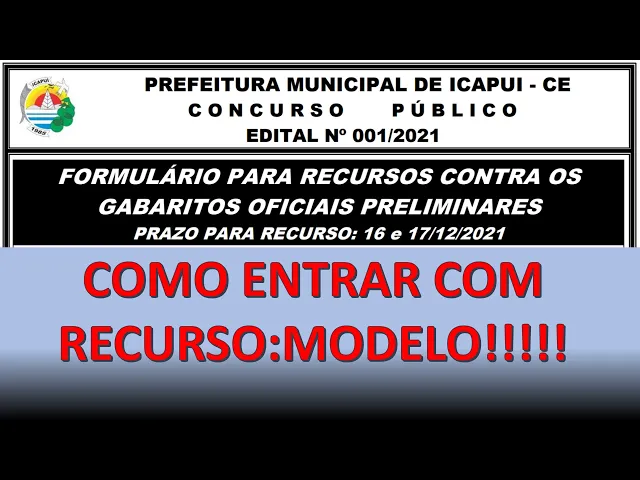 SAIU O GABARITO DE ICAPUÍ - MUITAS QUESTÕES ERRADAS - COMO ENTRAR COM RECURSO (Link na Descrição)