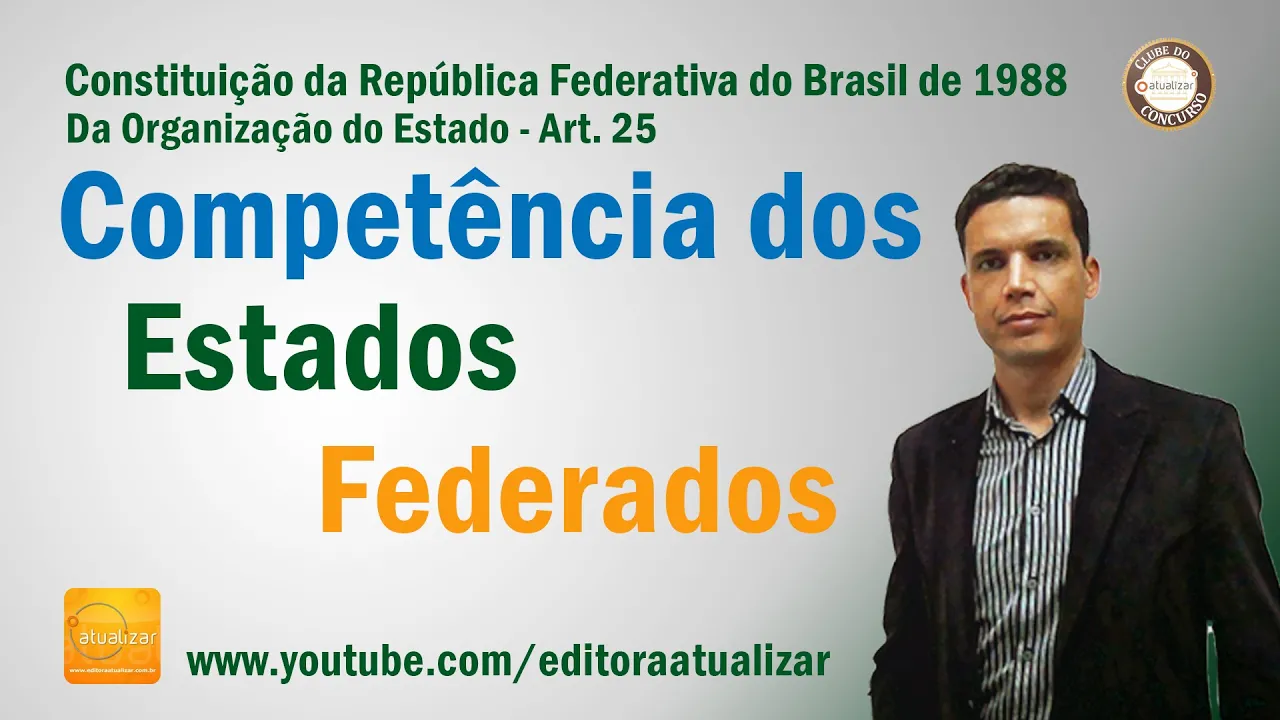 bem de volta com o nosso curso de Direito Constitucional de volta com a competência com a repartição de competências entre os entes federativos vamos falar do artigo 25 né as pessoas não estudam muito o artigo 25 e acabam muitas vezes errando uma questão de prova errando uma questão de concurso de bobeira por conta né dessa não lembrança de de coisas tão simples né as pessoas se preocupam muito em estudar a competência da União em estudar a competência dos Municípios e acabam se esquecendo de estudar o artigo 25 que trata sobretudo da competência dos Estados né