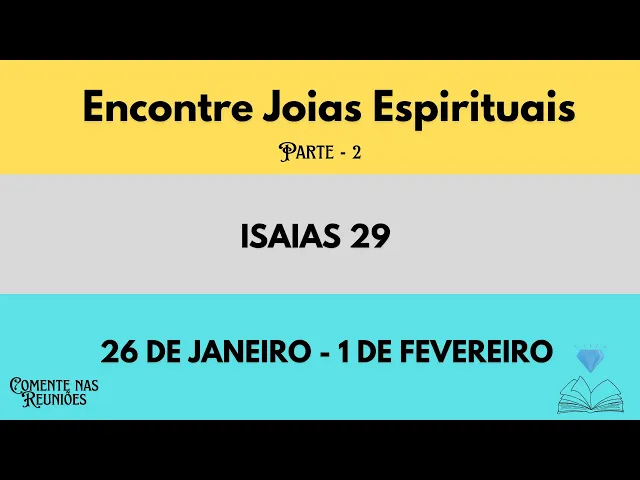 Olá, irungãos e irmãs. Bem-vindos ao canal Comente nas reuniões. Hoje vamos compartilhar sugestões de resposta na sessão de Encontre Joias Espirituais, parte dois da semana do dia 26 de janeiro a 1o de fevereiro.