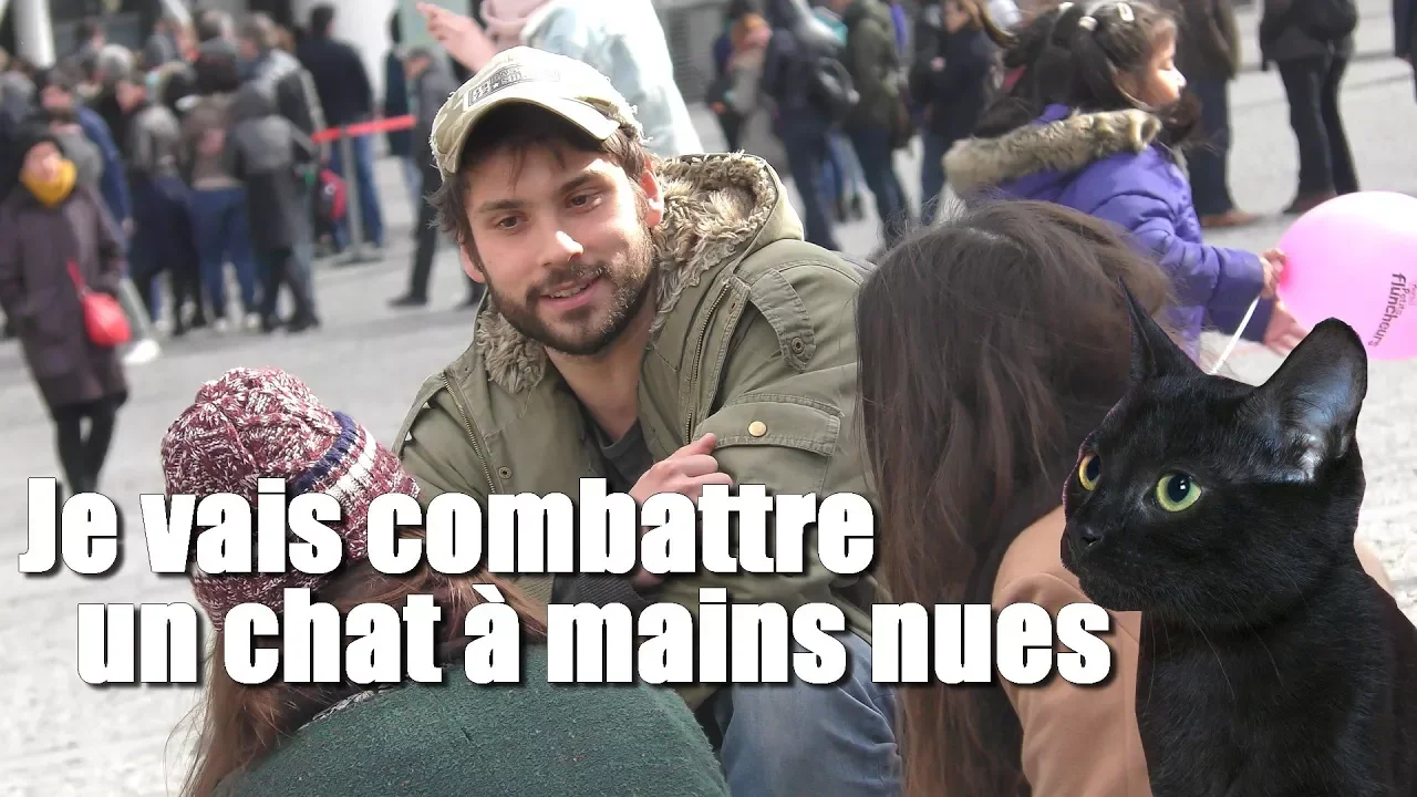 Il vient tous les soirs gratter à la porte et l'emmerder, enfin, essayer de la choper et tout ça, et moi, ça m'emmerde un peu. Donc, j'ai envie de l'affronter, ce chat, j'ai envie de me battre, complet, exactement. Bah oui, parce que moi, j'ai déjà la force, en fait.