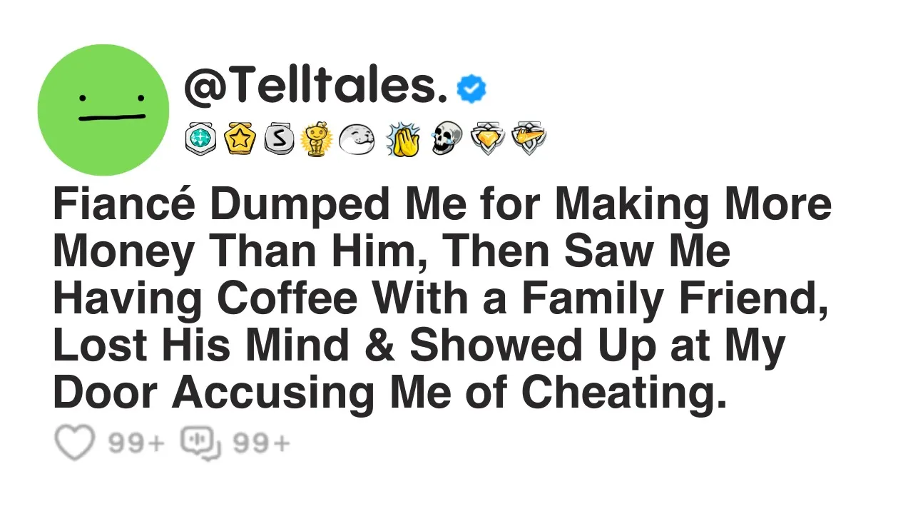 fiance dumped me for making more money than him then saw me having coffee with a family friend lost his mind and showed up at my door accusing me of cheating hey everyone I 28 had been with my fiance Alex 34 since 2020 we met at a friend's party hit it off and half slash had been together ever since he finished his Doctorate in economics just last year since then he has been working at the uni I have my masters in media sciences and decided to start working instead of going for a PhD okay so the
