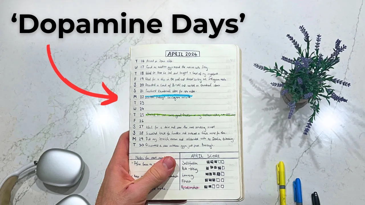 for the past few months I've started using a journaling technique that literally takes me 2 minutes to do and I call it dopamine days and I'm going to be honest with you guys I've always loved the idea of journaling and I've constantly sort out new techniques and methods that I could do to try and stick with that habit because I'm sure you're aware of how important journaling is if you want to stick with your goals make progress towards kind of the future life you want to build but also to reduce stress and just kind of