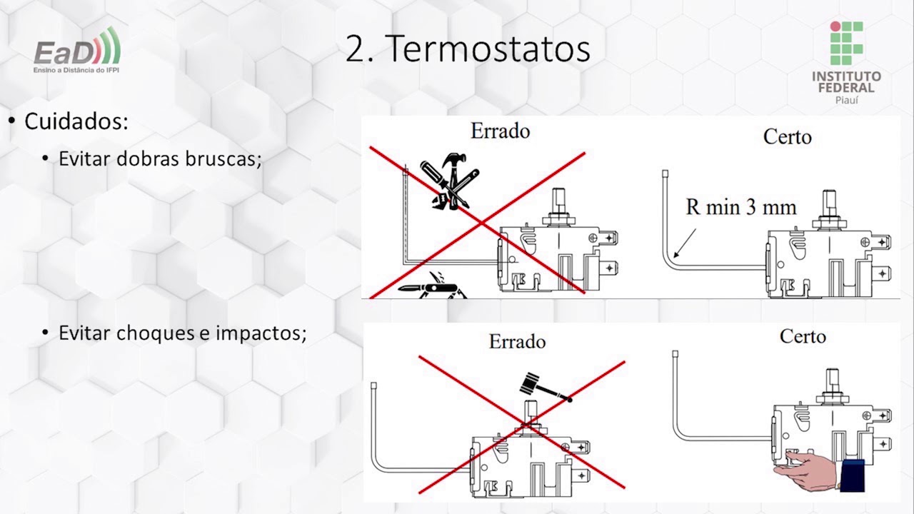 condições de partida na evitando altas correntes na partidas além disso ele vai evitar ruídos é também durante a partida ele vai ter um ruído vai ter uma transição de vibração maior e com isso ele vai garantir uma vida útil maior tanto para o compressor quanto para os outros motores elétricos alguns cuidados na principais tem que ser feito tem que ter tem é preciso ter atenção é com alguns cuidados principais no processo de manos a instalação de inversor de freqüência então esse sistema ele precisa de um aterramento correto então há o sistema tem que ter tem