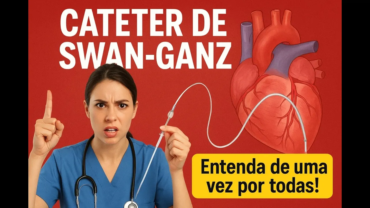 e o cateter de swan-ganz o cateter de artéria pulmonar é um cateter flexível e fabricado em poliuretano que introduzido através de uma veia central de adequado calibre chega as estruturas cardíacas e pulmonares é inserido para Obter dados muito precisos indicado na terapêutica para o controle do estado hemodinâmico do paciente crítico e sobretudo se está em estado de choque situação em que o cateter encontra sua máxima indicação esse tipo de cateter é muito cobrado em provas de concurso fica a dica aí galera o cateter é inserido por uma veia Central jugular interna ou subclávia de preferência