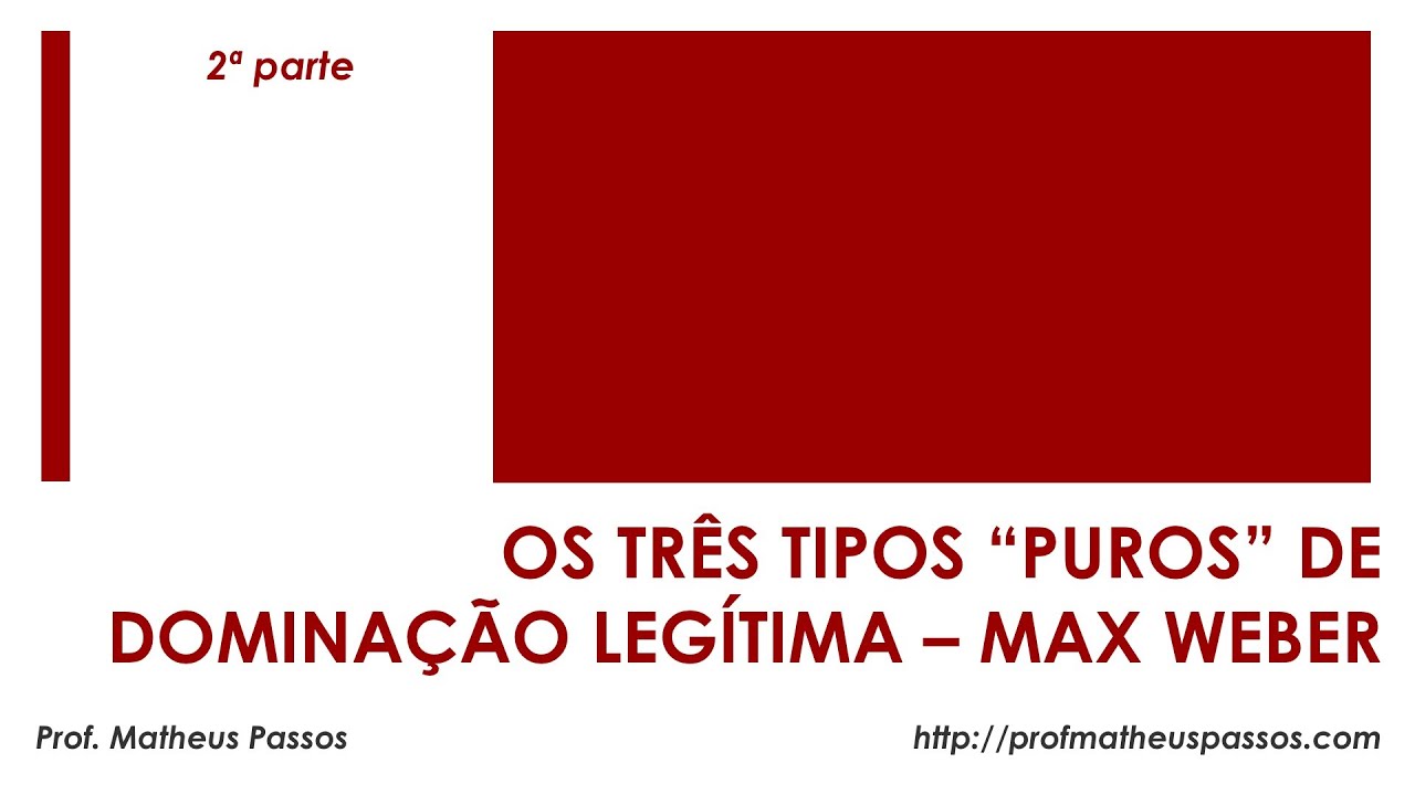 olá pessoal aqui é o professor mateus e nesse vídeo vou falar acerca dos três tipos puros ou ideais de dominação legítima conforme o sociólogo alemão max vb o sociólogo alemão max bebê nasceu em 1874 e veio a falecer em 1920 ele é considerado juntamente com conti e com o karl marx um dos principais fundadores da sociologia moderna e inicie sentido uma das principais preocupações ou uma das um dos principais objetos de análise do bb foi as religiões ou seja objeto de estudo de li um dos objetos de estudo era a questão religiosa ea influência da