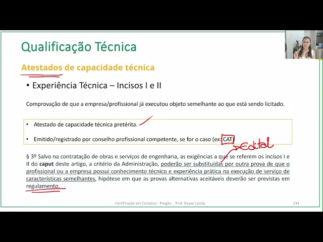aqui eu tô falando também de capacidade técnica operacional já já vou falar ali a diferença dos dois prova já endimento dos requisitos previstos em lei especial registro inscrição na na entidade profissional competente e declaração de que tomou o conhecimento de todas as informações e condições legais do cumprimento das obrigações objeto da licitação vou falar sobre tudo vamos lá bem primeiramente Qual a diferença entre capacidade técnico profissional e capacidade técnico operacional que fala aí no artigo 67 da nova lei bem gente idade técnica profissional é a capacidade dos profissionais que participam do quadro da empresa em