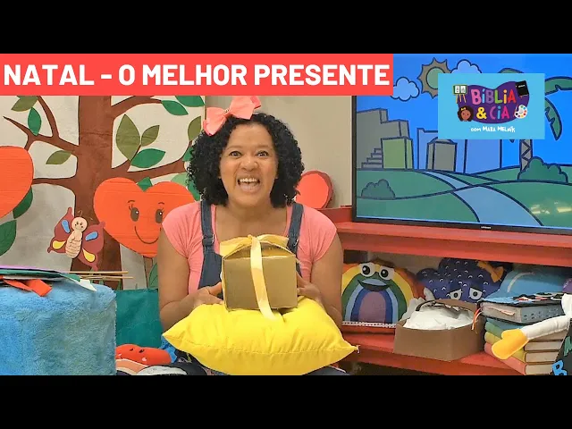 E aí [Música] Olá sejam todos muito bem vindos ao nosso Bíblia ai companhia Oi amiguinha Ai que bom que você tá aí sim muito legal que você que comigo você também amiguinho hahaha Que bom que você separou tempo a gente se encontrar aqui no nosso Bíblia e Companhia muito muito bom e você que já tá aqui com a gente sabe que agora já está na hora história hora da história é hora é hora da história é o tema de hoje é o melhor presente é Natal é Natal Lali chegou Natal porque todo mundo arrumar casa