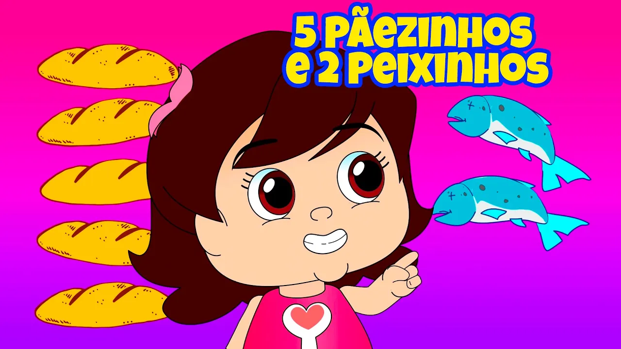 Todo mundo reunido pra ouvir Jesus falar Mas a hora foi passando e a barriga começou roncar Ninguém sabia o que fazer, nada tinha pra comer Então apareceu um menininho e repartiu o seu lanchinho 5 paeszinhos e 2 peixinhos foi o que o menino entregou Jesus orou, multiplicou e todo mundo se alimentou 5 paeszinhos e 2 peixinhos foi o que o menino entregou Jesus orou, compartilhou e todo mundo se alimentou E ainda sobrou Jesus pegou os pães e os peixinhos, agradeceu ao papai do céu.. então: um milagre aconteceu!! ele compartilhou com toda a multidão e a