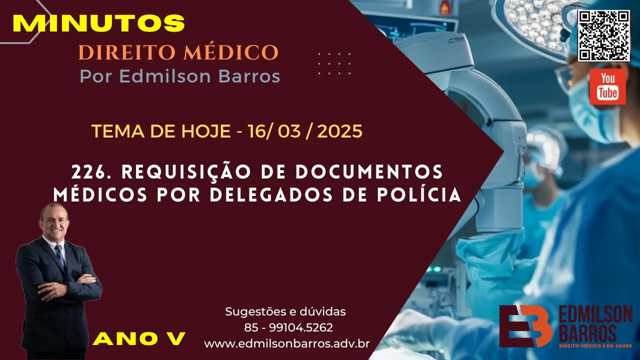 Olá amigos aqui Edmilson Barros e você está no canal do YouTube minutos de direito médico se você ainda não se inscr no nosso canal inscreva nosso tema de hoje é um assunto extremamente importante a requisição de documentos médicos por Delegados de polícia vamos lá [Música] Olá pessoal bem-vindos ao canal Hoje vamos falar sobre um tema que é de extrema importância para médicos pacientes e operadores do direito o sigilo médico Mais especificamente vamos abordar as situações em que o prontuário médico pode ser requisitado durante uma investigação criminal e quem tem a autoridade para acessar a essas