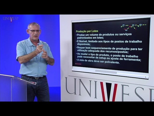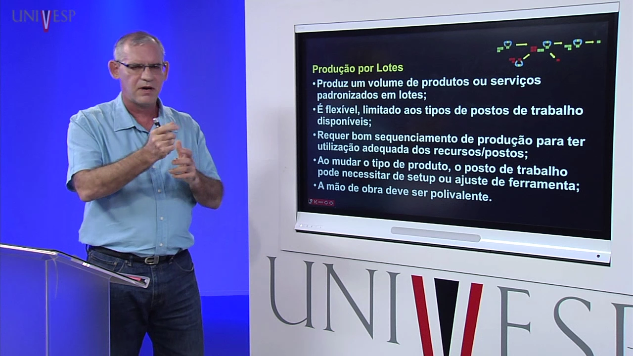 outra ponta o sistema em linha de produção em que eu tenho o tamanho do lote grande ou seja eu produzo em em massa alguma coisa só que a minha flexibilidade é baixa eu produzo em massa só que coisas muito parecidas ou o mesmo produto e aqui no meio né no ponto intermediário aqui a gente tem essa produção em lotes que ela une pontos positivos dos dois aí e Dependendo do que você precisa Ele atende em termos de lote e atende também em termos de flexibilidade Ok obrigado e até a próxima aula [Música] [Música] [Música] [Música]
