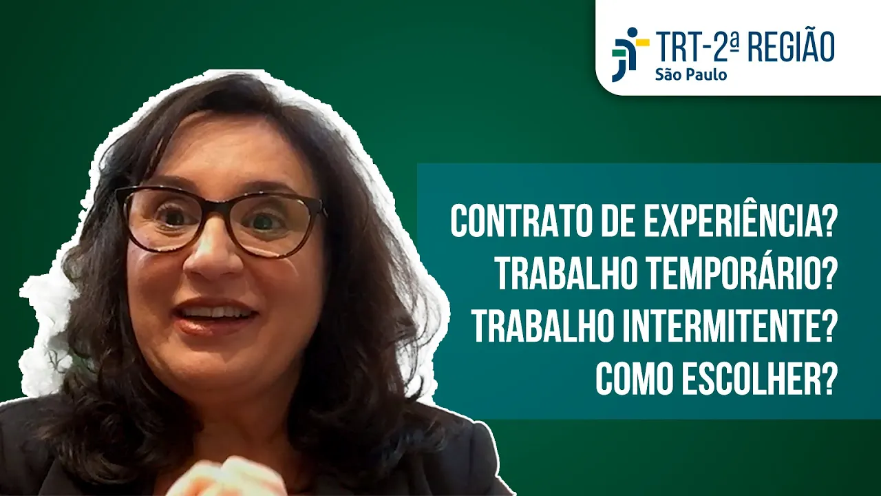 Olá pessoal eu sou a juíza Luciana Bezerra titular da quinquagésima Sétima Vara do Trabalho de São Paulo e hoje estou aqui para trazer algumas novidades e alguns esclarecimentos sobre três tipos diferentes de contratos de trabalho o contrato temporário o contrato de experiência e o contrato de trabalho intermitente o contrato de experiência é uma modalidade de contrato por prazo determinado ele foi inspirado no Direito Civil sobre o ponto de vista do empregador a finalidade do contrato é verificar se o empregado tem aptidão para exercer a função para Qual foi contratado e para o empregado o objetivo