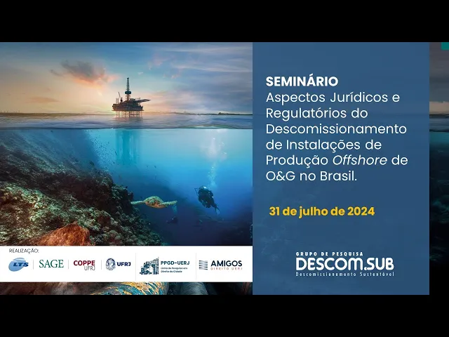 o descomissionamento é eh de forma eh inerente ao processo ele é Interdisciplinar e portanto exige que esse trabalho seja feito na de forma cooperativa né portanto a gente vem promovendo dentro do nosso grupo de pesquisa eh com apoio das da da da Petrobras e da NP eh a gente vem promovendo esse esse esses encontros e esses seminários esses workshops e promovendo a cooperação eh entre as diferentes áreas né Eh e para citar especificamente aqui o tema do nosso seminário hoje Há uma uma uma importante interação entre a área jurídica e a e o descomissionamento para