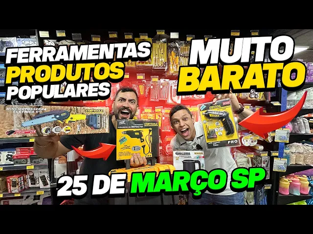 tô aqui na 25 de Março e hoje vou mostrar para vocês o lugar certo para você quer comprar kit ferramenta utilidade popular e muito mais é ou não é meu amigo com toda a certeza dião já vamos mostrar essas pauladas pra galera só para vocês terem uma noção é furadeiras a gente tem a partir de R 45 e Duvido que vocês já viram essa daqui ó que se transforma em qualquer ferramenta que você quiser furadeira lavadora jato esmerilhadeira cortadora de madeira essa aqui é a mais completa e você vai consultar o valor isso aqui no