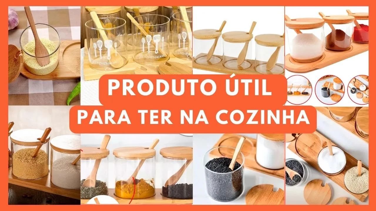 kit PERFEITO de 3 POTES PORTA TEMPERO de VIDRO com tampa e colher de BAMBÚ | Achado SHOPEE