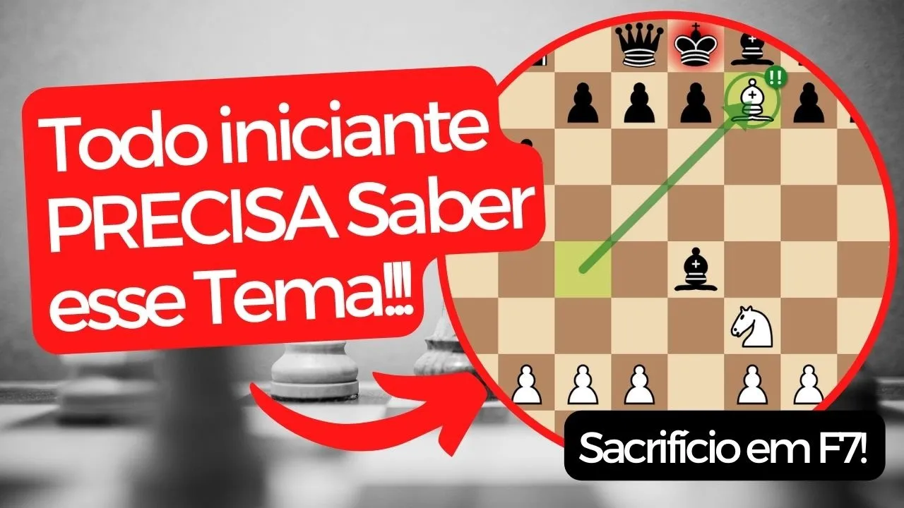 E aí pessoal tudo bem com vocês eu espero que vocês estejam maravilhosamente bem e hoje eu vou falar de um tema de sacrifício que todo iniciante precisa conhecer eu tenho certeza que isso aparece com muita frequência nos seus jogos e vez ou outra inevitavelmente você acaba deixando passar mas não depois desse vídeo e o tema é o sacrifício na casa de F7 Então vamos começar explicando porque que isso acontece porque que isso é um tema com um exemplo vamos lá o jogador de brancas joga peão E4 e o seu adversário decide optar pela defesa Owen