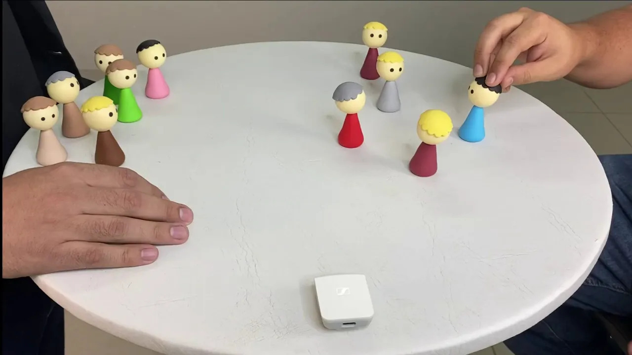E aí Hoje eu tô aqui com Henrique e a gente vai fazer a constelação organizacional dele O Henrique é um líder em uma organização eu vou passar aqui as instruções iniciais férias e tô aí Aqui são bonecos obviamente e esses bonecos são objetos eles não tem vida própria não falam não anda por si só são apenas bonecas que a gente vai utilizar como Âncora essas âncoras a gente vai utilizar para posicionar nesse ambiente aqui posicionamento vai ser natural a Eu sinto que esse boneco tem que ficar aqui E esse aqui esse é o funcionário um