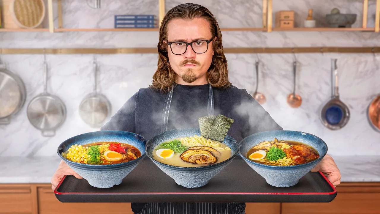 Ramen is really having its moment in time right now and I'm not talking the instant kind I'm talking ton kotu talking shoyou it also happens to be one of the most timeconsuming soups in the world to make at least we thought so so today we're going to be making three of the most iconic Ramen as fast and easy as humanly possible and hopefully we can make them just as good as their longer counterpart we're going to be doing our best to keep this as traditional as possible ton kotu we reduce the amount of cook time