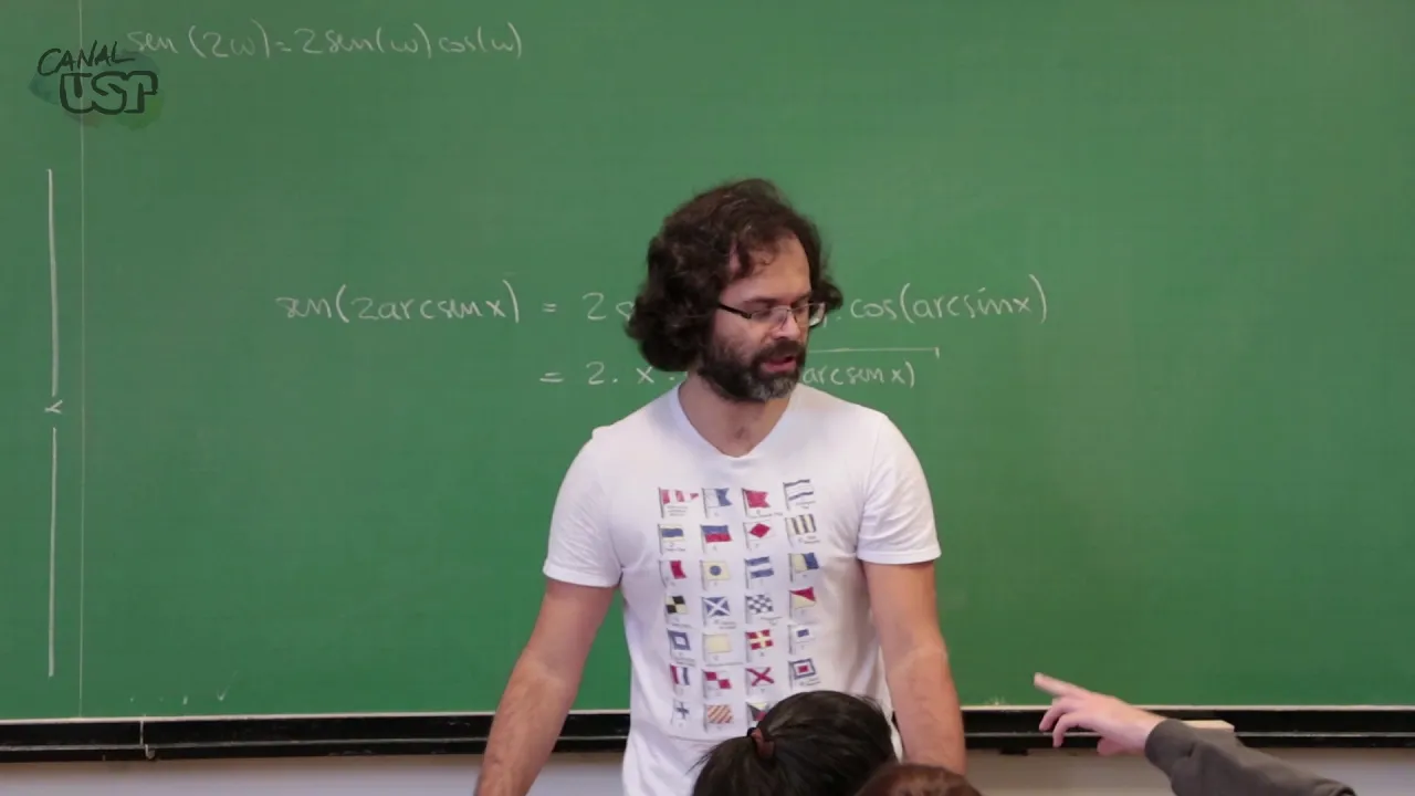 de uns bem mas a constante sua cara não tá muito boa a que qual foi a dúvida aí como passou aqui pra cá vamos lá então vamos escrever isso com um pode você pode essa identidade num triângulo você quiser mais tomar ó que é sereno vou escrever de uma vez tá que há um cena de um arco duplo duas vezes os e no vezes o conselho não é isso tá quanto que é cena do arco cena uma função calculado em cima dos inversa então vai dar 2 fica sendo o único senhor x o que é