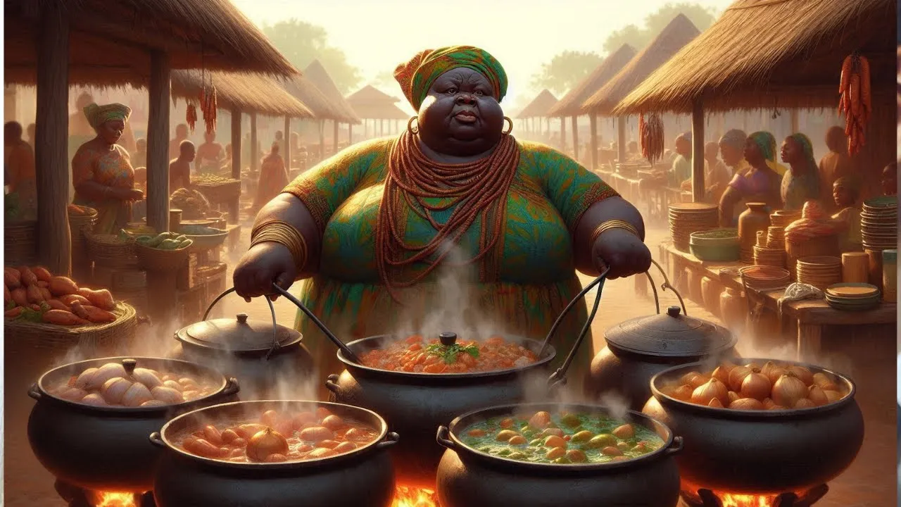 il y a longtemps il y avait une femme grosse et effrayante nommée madame j comme l'appelaient ses clients car elle vendait la meilleure soupe de viande ses aliments étaient toujours frais et les meilleurs du marché chaque jour de marché elle arrivait avec ses grandes marmites de cuisson elle ne parlait à personne rapidement les villageois se rassemblaient autour d'elle et bientôt ses mas étaient vendus en un clin d'œil dès qu'elle avait vendu toute sa nourriture bon marché elle repartait tranquillement avec ses marmites vides les villageois se demandaient comment cette femme grosse pouvait cuisiner et vendre une
