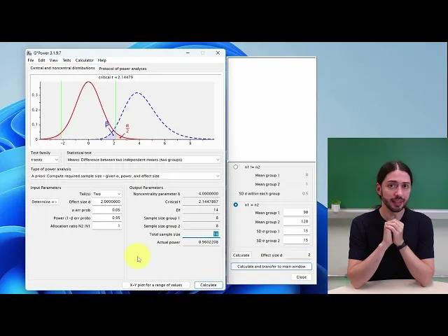 que tem um efeito maior Talvez seja biologicamente relevante você buscar algo parecido com aquilo A não ser que o padrão ouro seja extremamente tóxico melhora muito a doença mas ela morre por outra coisa aí você pode buscar algo um pouco mais intermediário eu sempre importante ter isso em mente para tentar deixar a estimativa do tamanho de efeito tanto realista quanto útil também Essa é a base do uso do g-power é dependendo do teste estatístico que você for usar vai ter outros parâmetros que você vai ter que por aí é que de novo você vai ter