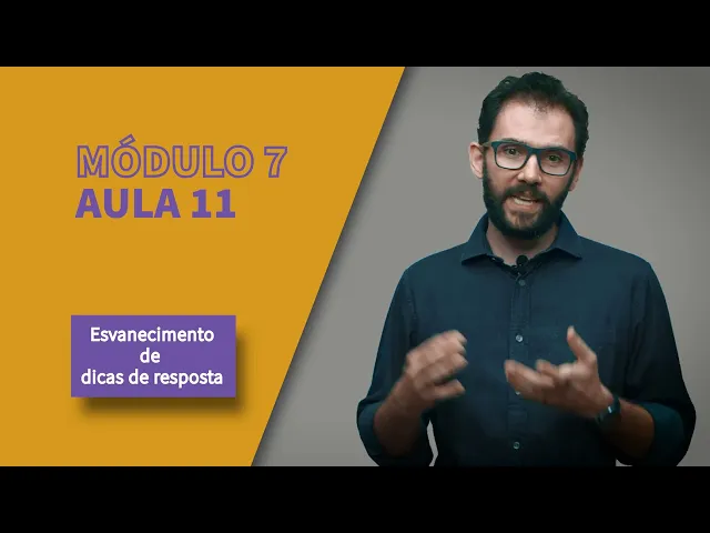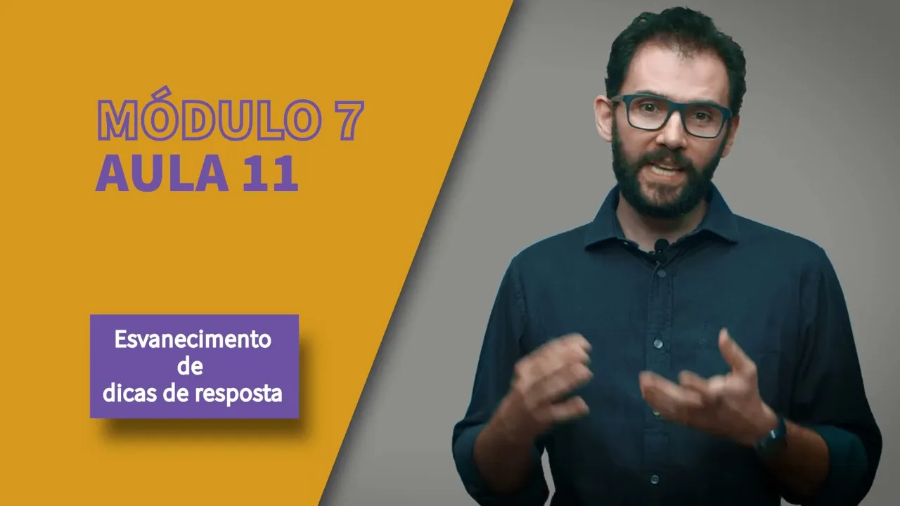 Módulo 7 aula 11 Já falamos sobre DTT, já falamos sobre uso de dicas e agora vamos falar sobre o desvanecimento de dicas de resposta. Se a gente está tentando transferir o controle de estímulos para o SD a partir das dicas, então é preciso eliminar essas dicas, nós precisamos retirar essas dicas pouco a pouco. Para isso a gente usa os procedimentos de retirada gradual de dicas ou desvanecimento de dicas.