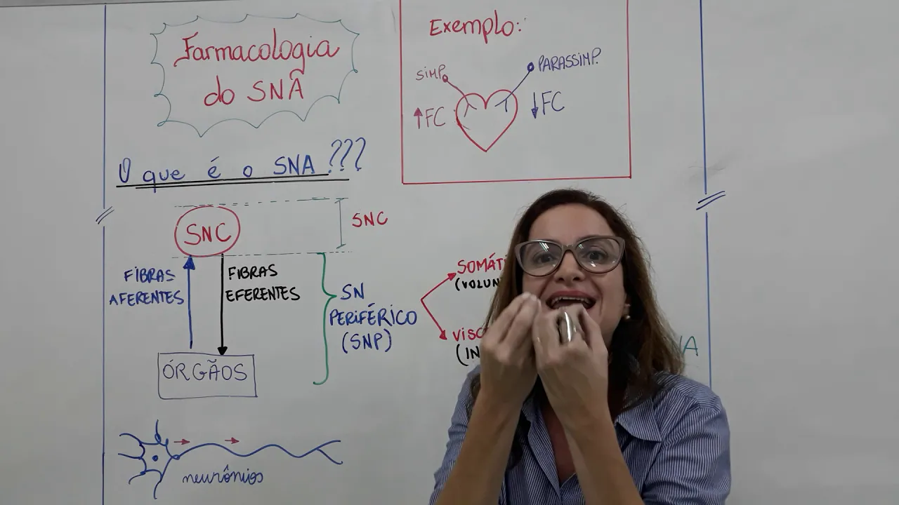 o pessoal pra quem não me conhece sou professora fabíola sou mestre em ciências biológicas ecologia o objetivo desse canal é que explicar a metodologia todas as obras até bastante complicada mas a gente vai tentar aqui para assumir os alunos para que eles vão me conhece começarmos a descomplicar essa disciplina que dá dor de cabeça e na graduação e hoje nosso tempo vai ser sobre o sistema nervoso autônomo farmacologia do sistema nervoso autônomo hoje meu objetivo é apenas responder uma pergunta quem é eo sistema nervoso autônomo como que eu vou estudar medicamentos fármacos drogas que atuam
