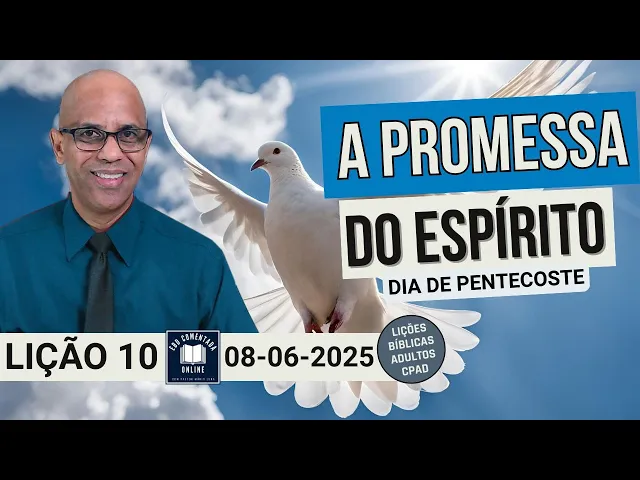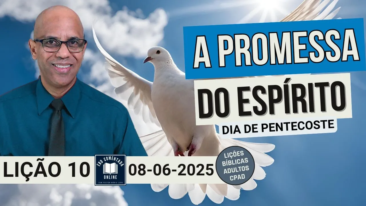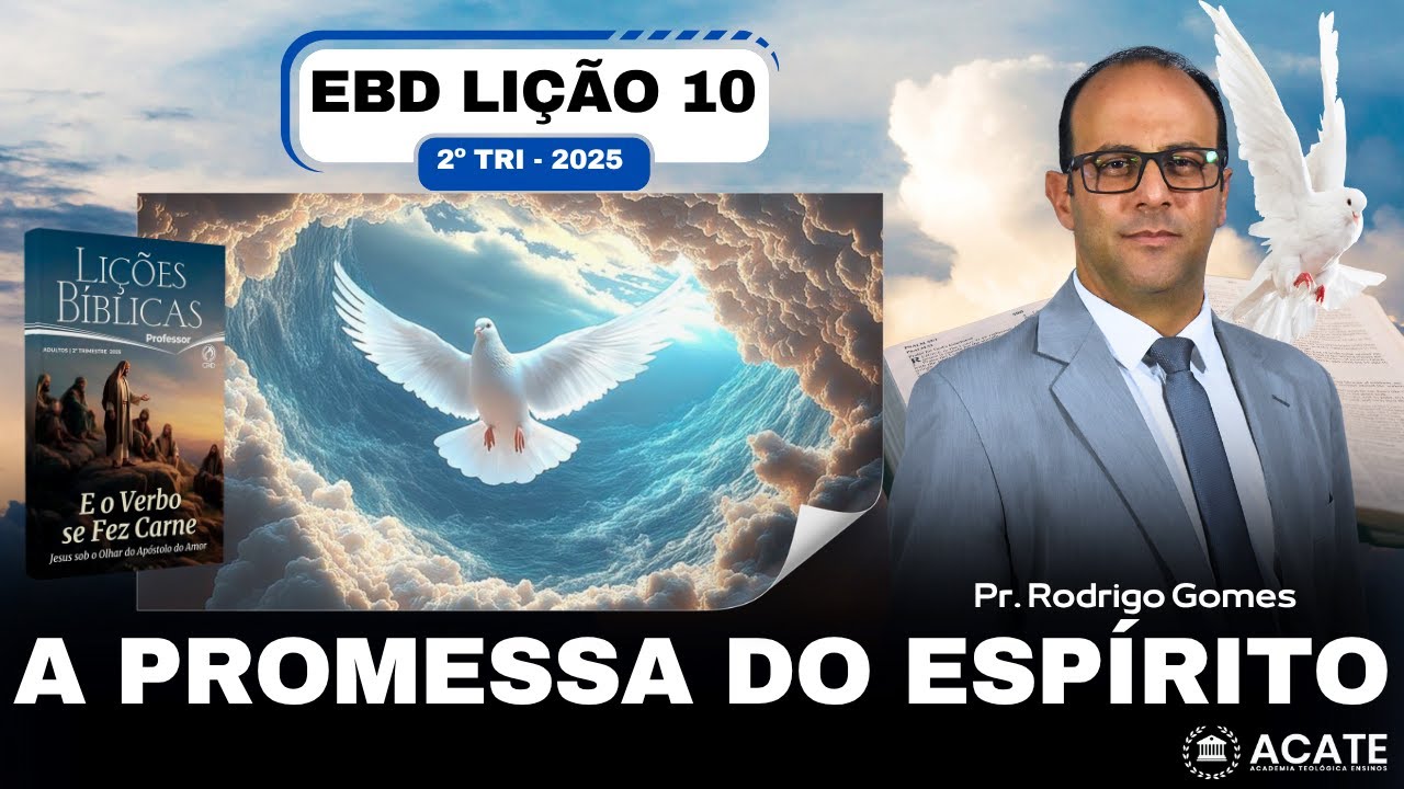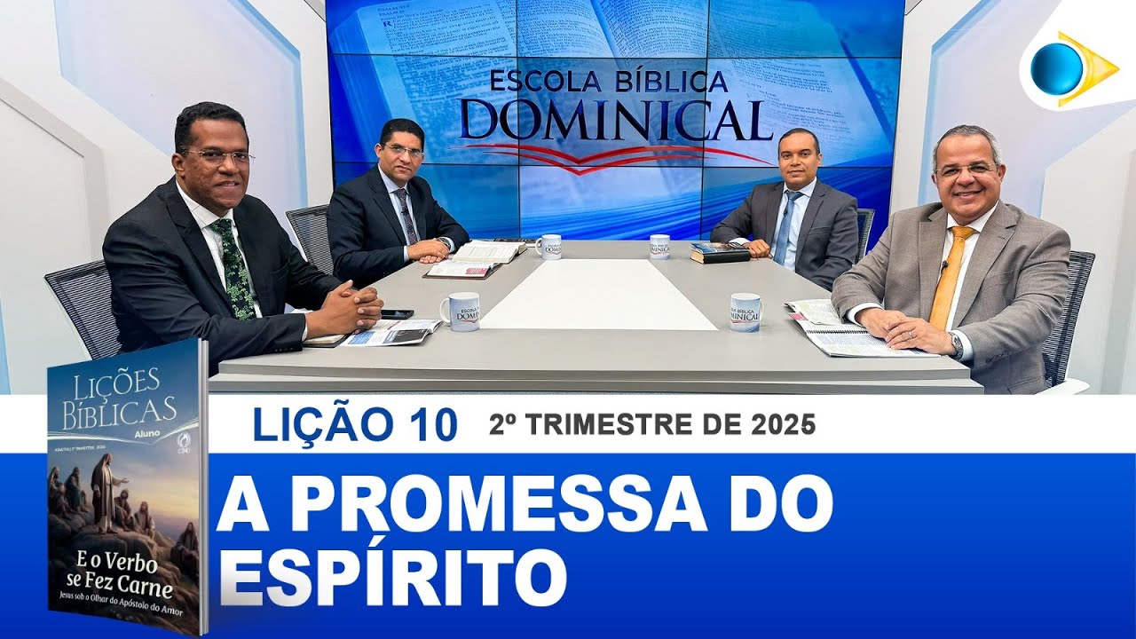 sobre Gálatas. Você já tem uma base. Você já tem uma base. Então, eu sempre tento mostrar que aprender nunca é demais, mas você precisa querer. Vamos lá. E o verbo se fez carne. Jesus sobre o olhar do apóstolo do amor. Nós continuamos aí. A lição de hoje é a promessa do Espírito Santo, dia de Pentecoste, lição 10, que tá será ministrada no dia 8 de junho de 2025, 2025. E nós já estudamos o verbo que se tornou carne, lição um, novo nascimento, dois, a verdadeira adoração, três, Jesus, o pão da vida, quatro, a verdade que