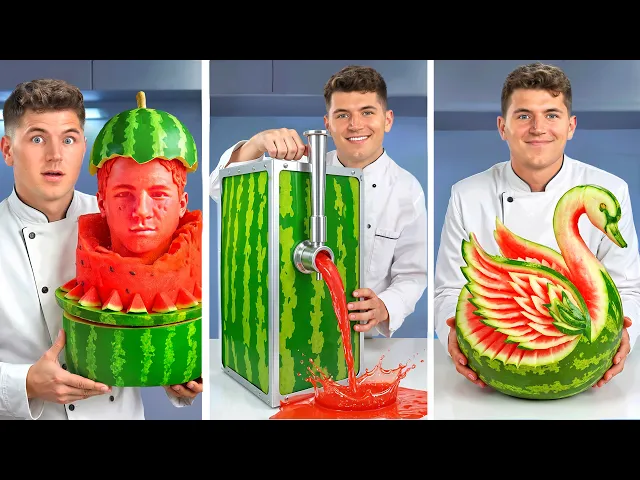 the...? It's cake? Nick: Did I trick you? Patrick: That looks like the most realistic cake I've ever seen in my life. Nick: I tried so hard to get a real square watermelon, but it's impossible. And frankly, it's illegal. Instead, I got a watermelon cake. Patrick: You had me. I was so excited for a real square watermelon. But I'm probably a little more excited for this cake now. Nick: I'm a little more excited for what we're doing next. We already showed you with that cake how creative you can get with a watermelon, but this is even