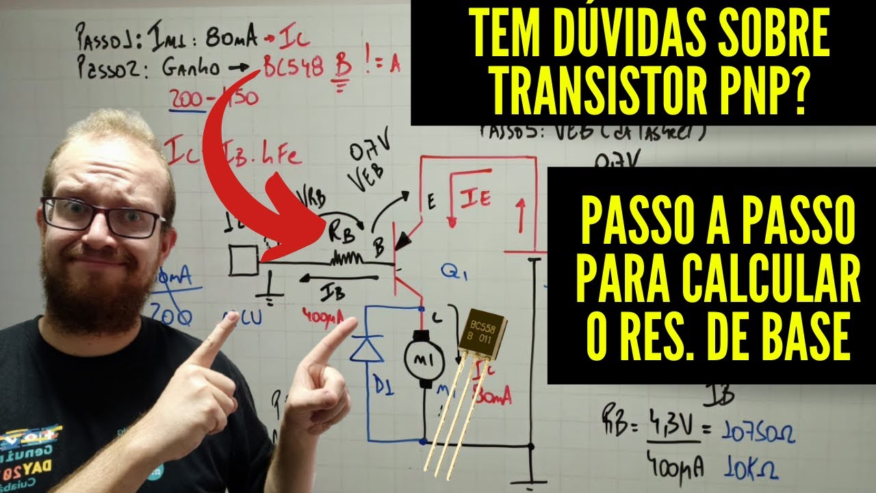 [Música] tem um detalhe aqui nesse circuito que ele não tá atendendo ao que a gente precisa ele não tá atendendo ao que a gente precisa por quê Porque o cálculo que eu fiz do resistor da base desse resistor da base aqui ó ó como é que a gente chegou nesse valor aqui a gente pegou oit a gente pegou o valor da tensão do resistor e dividiu da corrente da base não foi só que essa corrente da base aqui foi calculada a partir de uma corrente máxima de coletor de quanto de 100 m mas não é