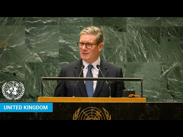 the assembly will hear an address by his Excellency Kier starmer prime minister and first first Lord of the treasury of the United Kingdom of Great Britain and Norther Northern Ireland I request protocol to escort his Excellency and invite him to address the assembly Mr President your excellencies ladies and gentlemen I address the general assembly today as someone with a deep belief in the principles of this body and the value of international cooperation I remember reading the universal Declaration of Human Rights as a student it had a profound impact on me I spent my career as