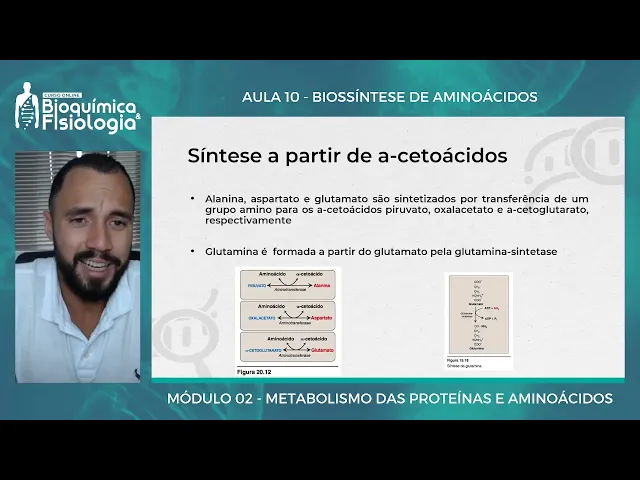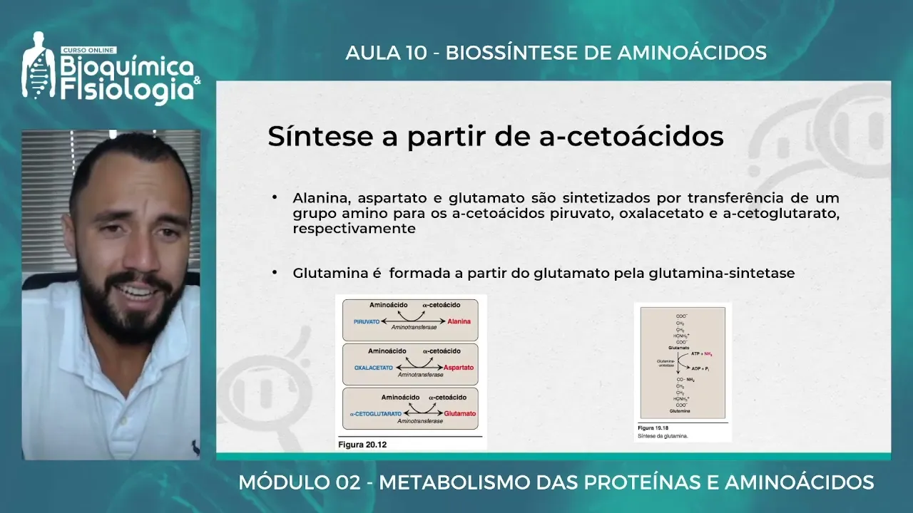 Olá tudo bem seja bem-vindo a mais uma aula no nosso módulo de proteínas e aminoácidos aqui nós iremos falar um pouco sobre a biossíntese né a partir de que o nosso corpo produz aminoácidos a gente falou e que existem aminoácidos que são classificados como essenciais e também Existem os aminoácidos que são classificados como não essenciais basicamente os mamíferos produzem os aminoácidos não essenciais os condicionamentos essenciais nós também prodos né a gente viu que essa classificação de condicionalmente Essencial cabe em determinadas situações onde a produção da cont da demanda então nós produzimos os condicionamentos essenciais né