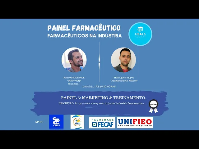 E aí gente boa tarde novamente para quem está começando com a gente agora né E quando também boa tarde para quem tá com a gente desde as nove horas da manhã tem uma galera que está nos acompanhando beijo cedo as três palestras os três painéis do período da manhã e já estamos do terceiro painel do período da tarde nosso sexto tema dentro dos painéis do painel dos profissionais da Indústria Farmacêutica Realmente são construções Muito bacanas muito ricas a gente ter interações muito interessantes aqui no nosso o processo em resposta os nossos palestrantes Claro e assim